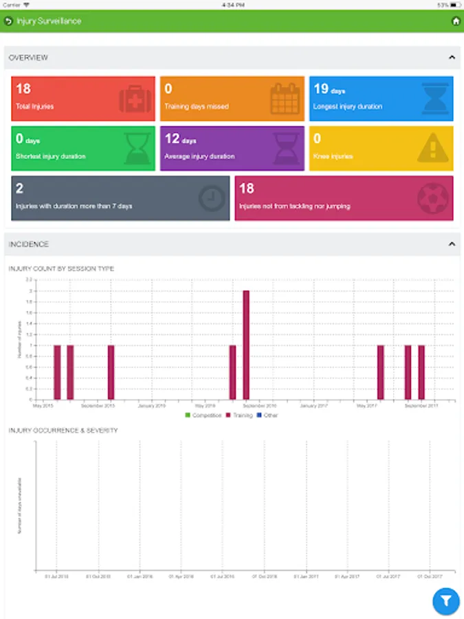 professional teams, personal trainers, colleges and schools. The system is highly user customisable and unique to each organisation, and can collect, store and report on any aspect of athlete management. The most common areas include -