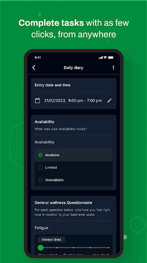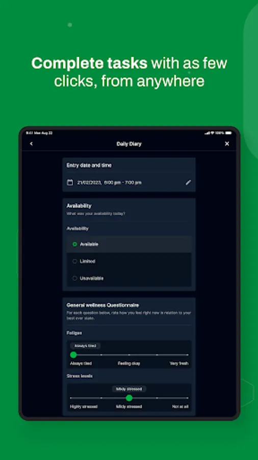 Mobile-friendly forms allow you to enter athlete and service member data from your mobile device. Use Favorites or the Calendar to quickly enter data for a specific event. Drop-downs, sliders, body diagrams, and more streamline the data entry process on your mobile device.