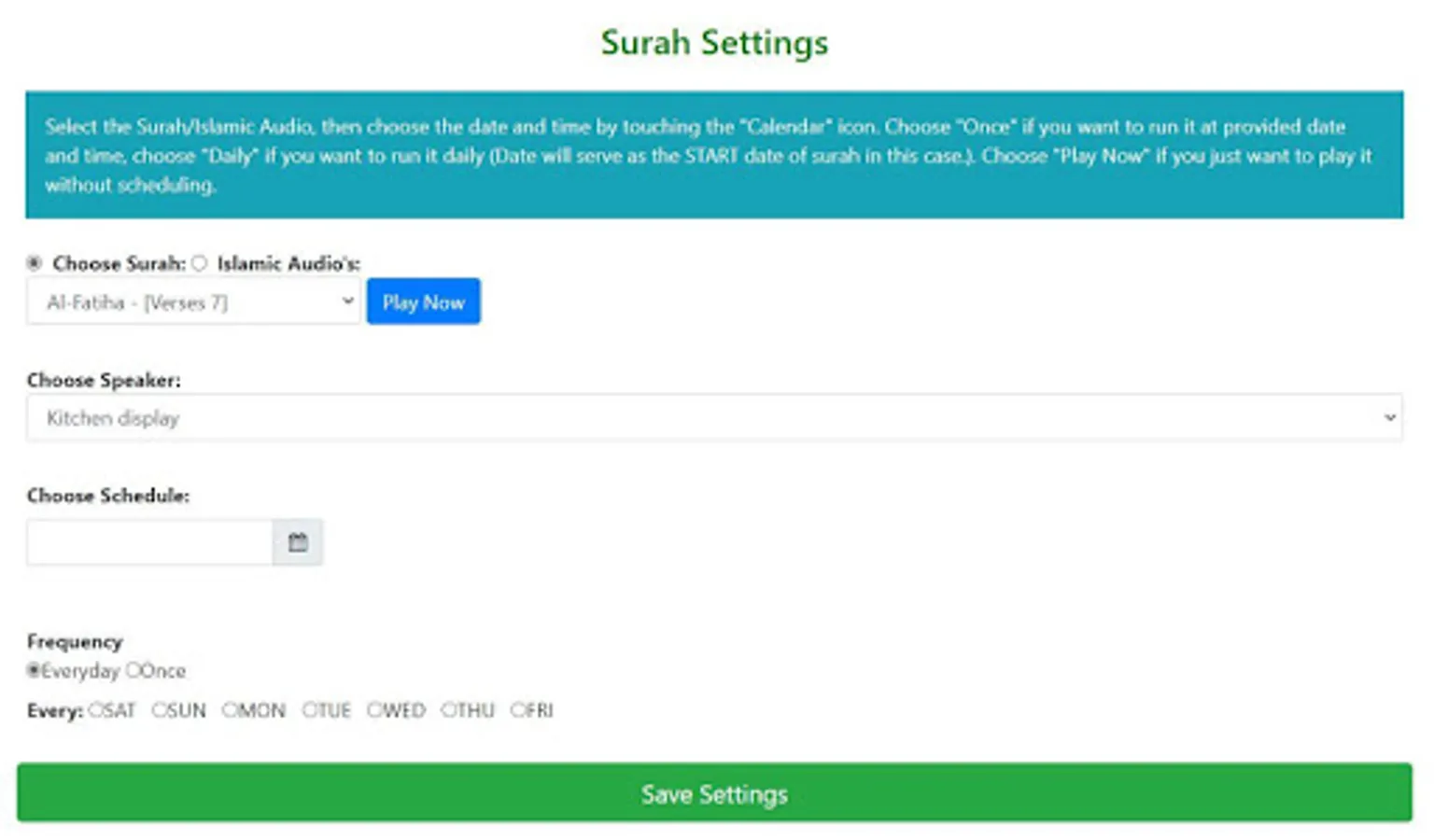 Do you need a way to automatically play Adhan/Azan on your Google Home Speaker or your chromecast? then this app will do that. Install the SCRIPT on Raspberry pi and then use this app to configure Adhan Settings.