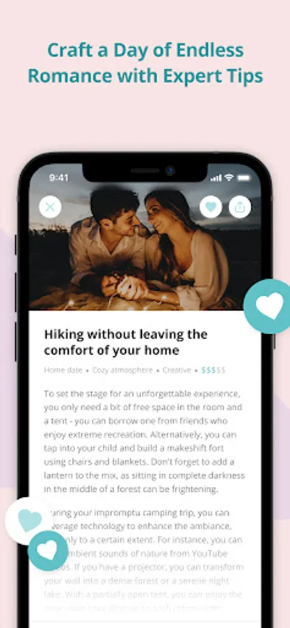 All the date ideas are broken down into cards. Each card has valuable tips to help you plan your date. A trip to the racetrack, culinary masterclass, or adventure quest? We have scenarios for all kinds of couples, every taste and budget.