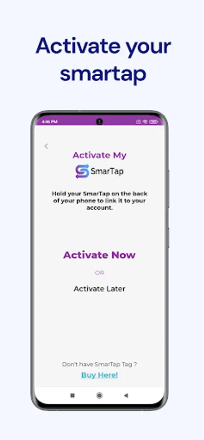 To get started hold your SmarTap Tag on the back of your phone to activate it and link it to your account. Your tag will store your details and it is ready to share. The best thing is other people don't need the app to get your info.