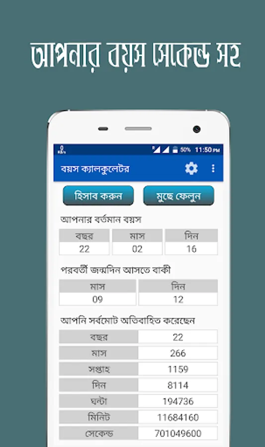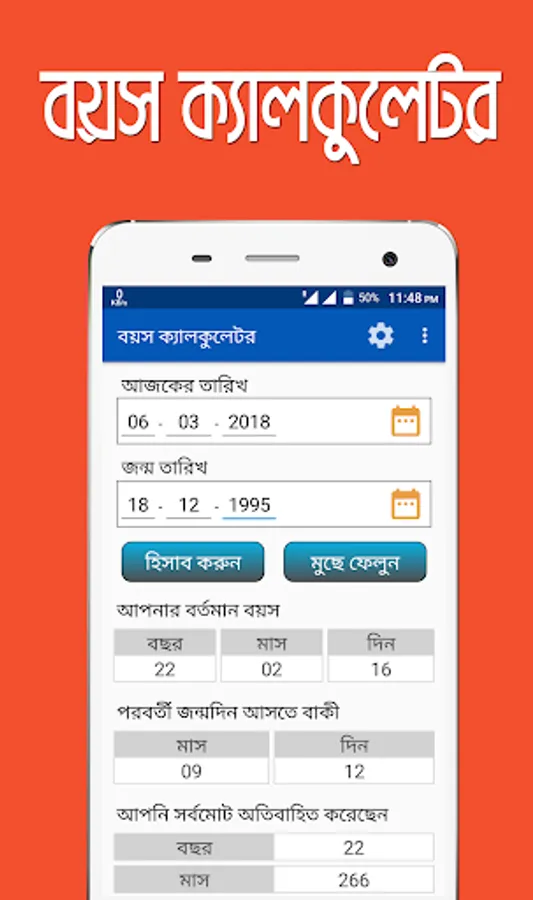 - বয়স, মাস, দিন, ঘন্টা এবং সেকেন্ড সহ দেখতে পারবেন।