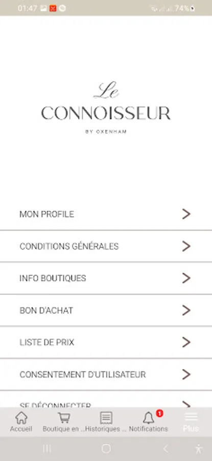 The Le Connoisseur Club loyalty application is an application developed for members of the Connoisseur Club to have an overview of their purchases, discount rates and receive push notifications in case of new promotions, events, etc.