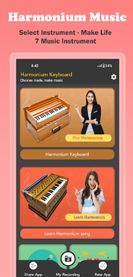 => Anybody who is interested in playing Harmonium and looking for a Harmonium app which provides real harmonium sounds and all octaves then this app is definitely for you as It provides you the experience of a Real Harmonium with authentic sounds.