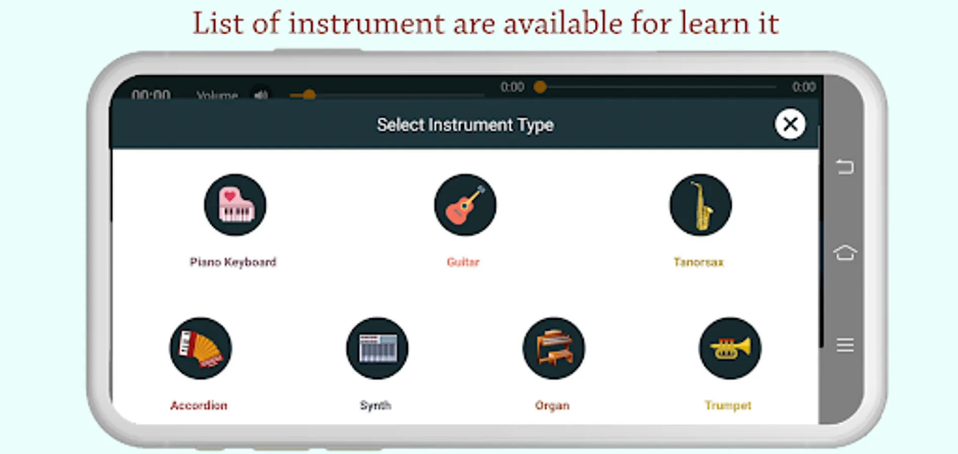 digital Piano app allow you choose sounds from a number of music instruments: from a grand and fortepiano, to the violin, harpsichord, accordion, organ and guitar.