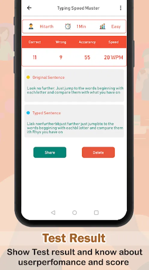 5. Test History : With the Typing Speed Test app give the Typing Test and Save the result of the test for future referral. You can even download and share the result with your friends and family members on any social media.