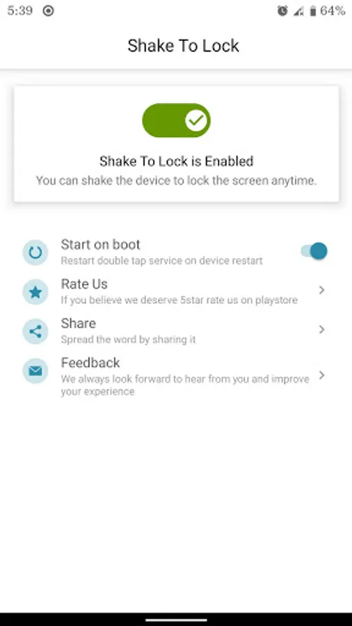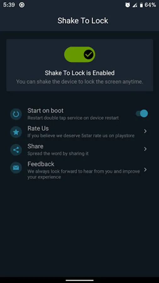 Shake To Lock and Unlock is very easy to use. Use the Shake to lock feature to lock your device for the best performance. Give it a try, if you need any new functionality, we're a click away to add your favorite functionality. We're more than happy to hear from you.