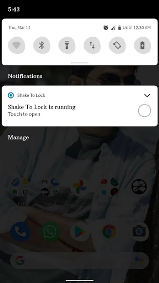 Once you allowed the permissions and enable the Shake To Lock and Unlock service, just shake you device and screen will be locked.