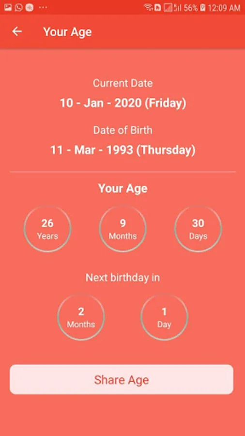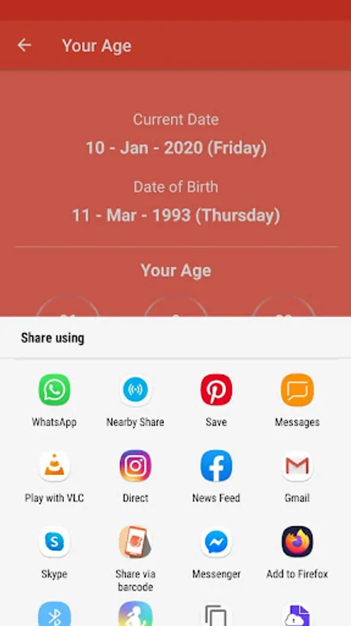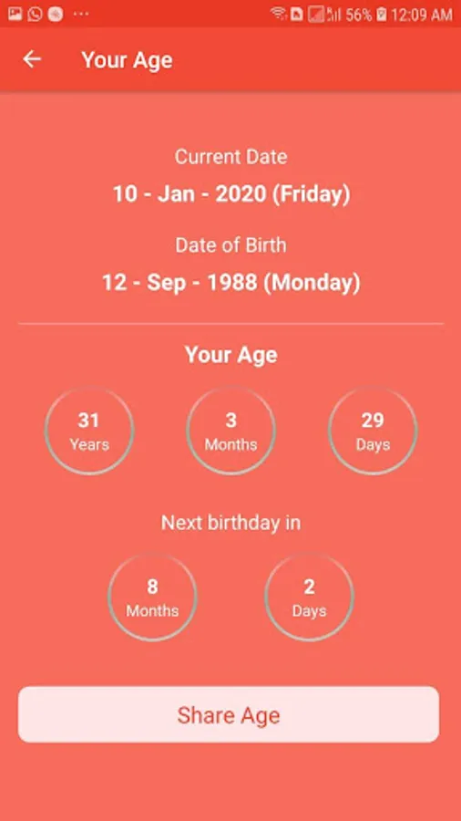 4. Share age with other using WhatsApp, Facebook, email etc.