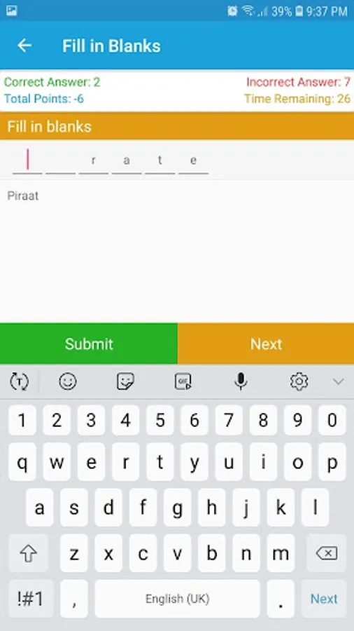 3. Fill in Blank Game with Dutch Hint