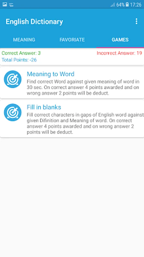 This has 2 types of games to test your Vocab Level.