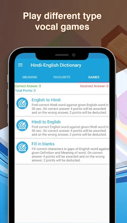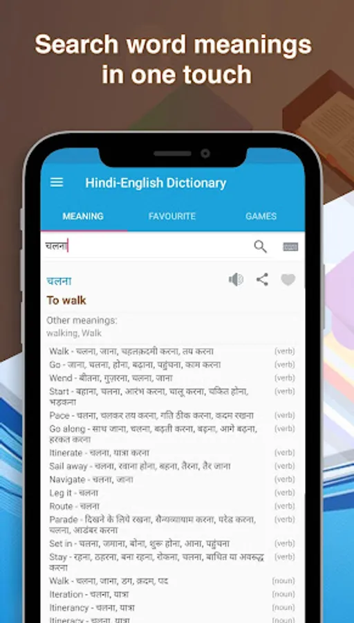 This Hindi to English Dictionary has a favorite word marking to get the useful word immediately.