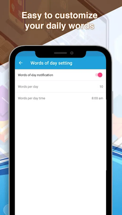 Hindi to English Dictionary has a word of day feature to show daily word meanings for you with a notification.