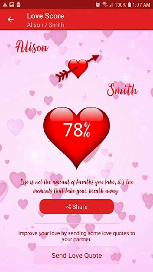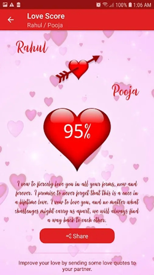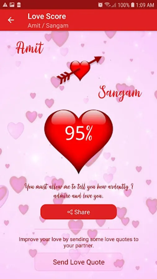 You and also use True Love Calculator for fun and joy with friends and share love percentage to others.