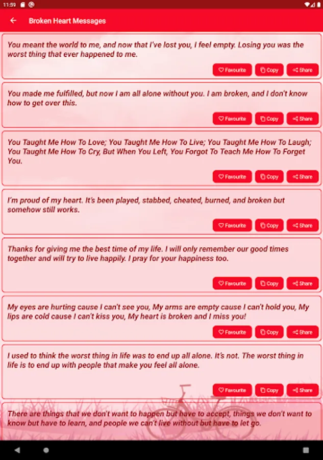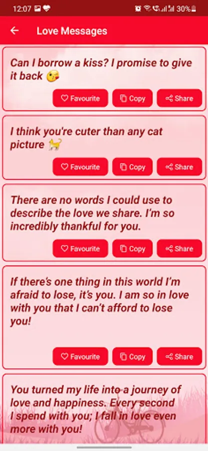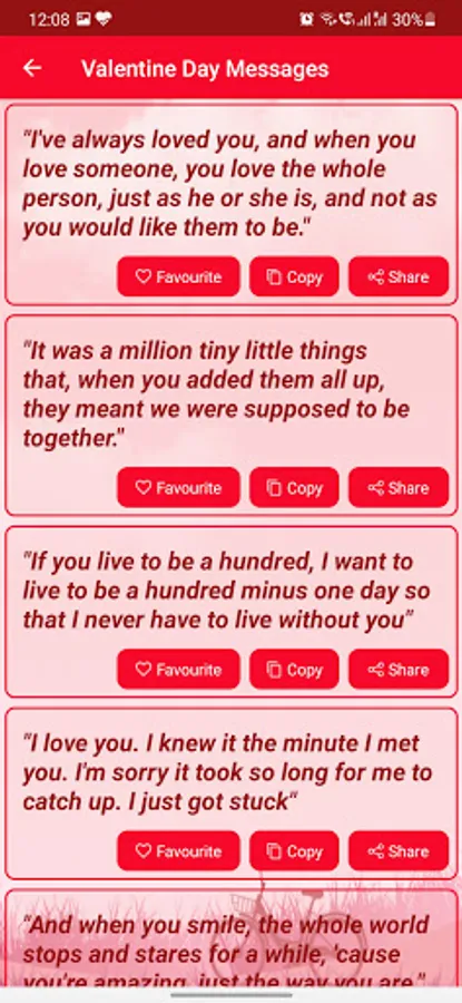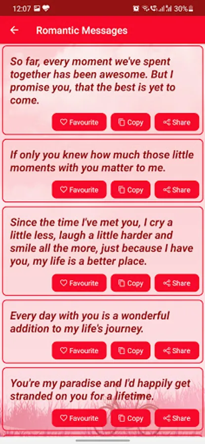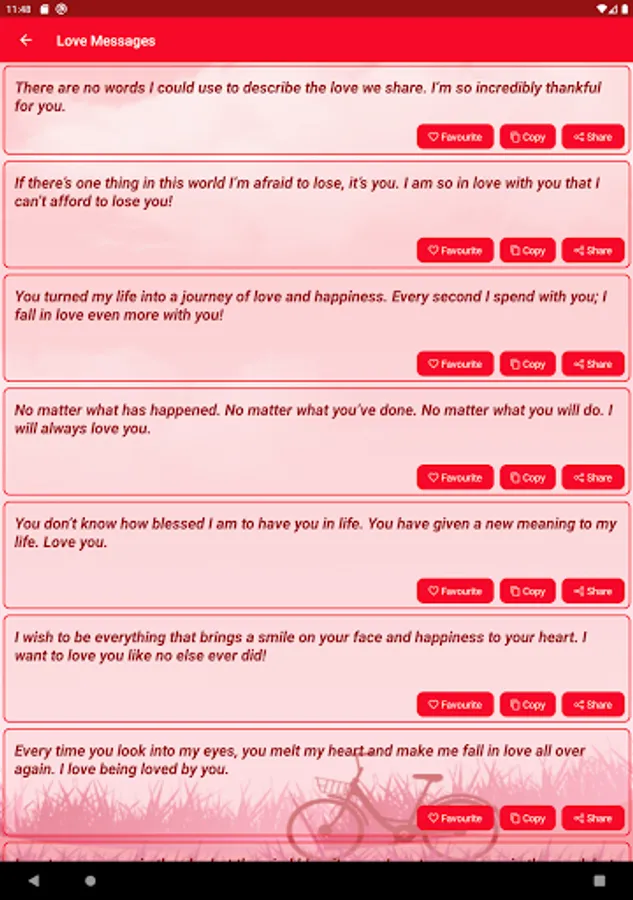 True Love Messages app provides an easy way to copy the message and share the message on Whatsapp, Facebook or any other messaging app.