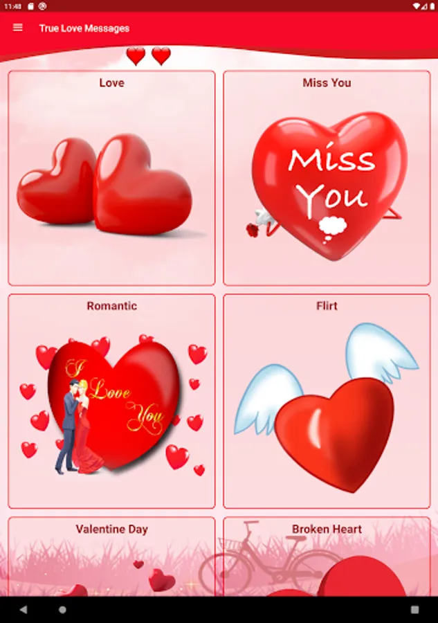 True Love Messages app provides a big collection of good and emotional messages. To impress your girlfriend/boyfriend, fiance or beloved love messages are very useful, this helps to express your feeling. True Love Messages app has categorized messages for different types of emotions and feelings. App has over 5000 heart touching messages to match your feelings and emotions.
