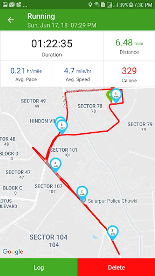 App has dual unit feature so you can use app in Km or Mile unit, as on your preference. This takes your basic body measurement i.e. weight, height, gender and age to calculate calories according your body.