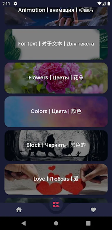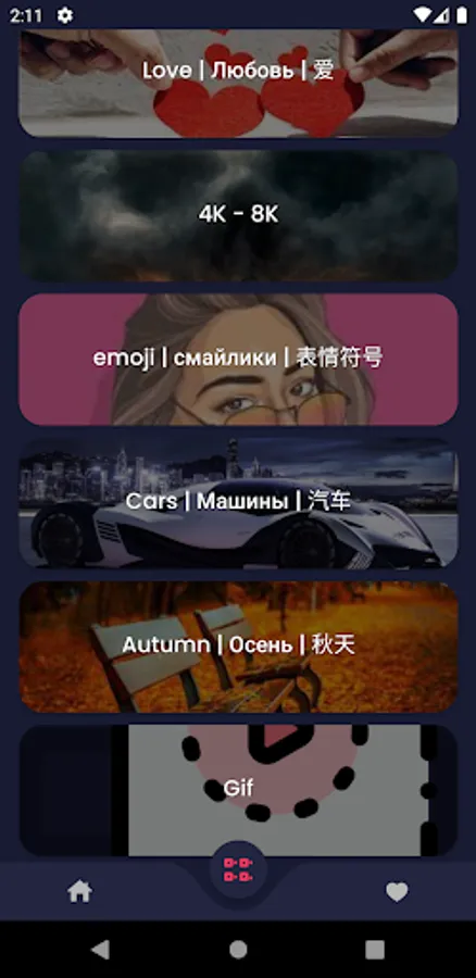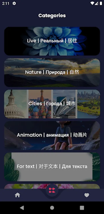* Live, Nature, Cities, Animation,For text, Colors, Black, 8k, 4k, Abstract, Animals, Anime, Celebrities, Fantasy, Aircrafts, Airplanes, Bokeh, Video Games, Cars and Motorcycle, Nature, Space, Galaxy, Architecture, City, Minimalist, Watercrafts, Ship, Music, Macro, Hi-Tech, Ocean, Sea, Flowers, Material Design, Food, Drinks, Photography, Superheroes Wallpapers and Backgrounds.