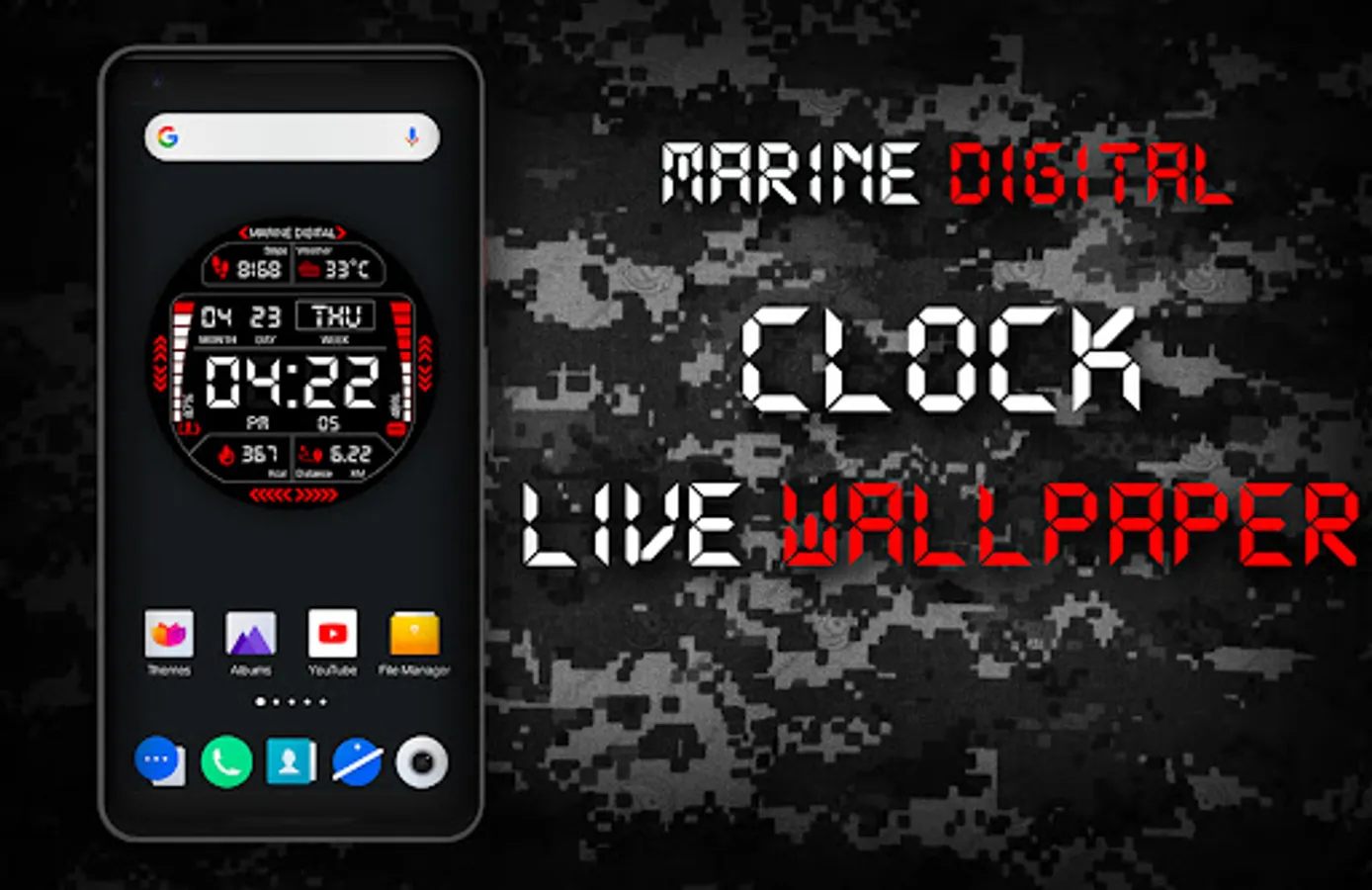 ❖ Unique Military Style Digital Watch Face and Clock Live Wallpaper.