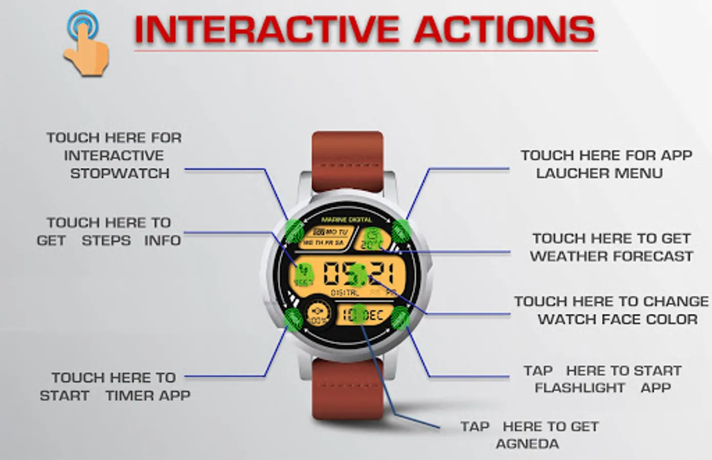 ❖ Marine Digital is fully Compatible with all Android Wear watches resolutions.