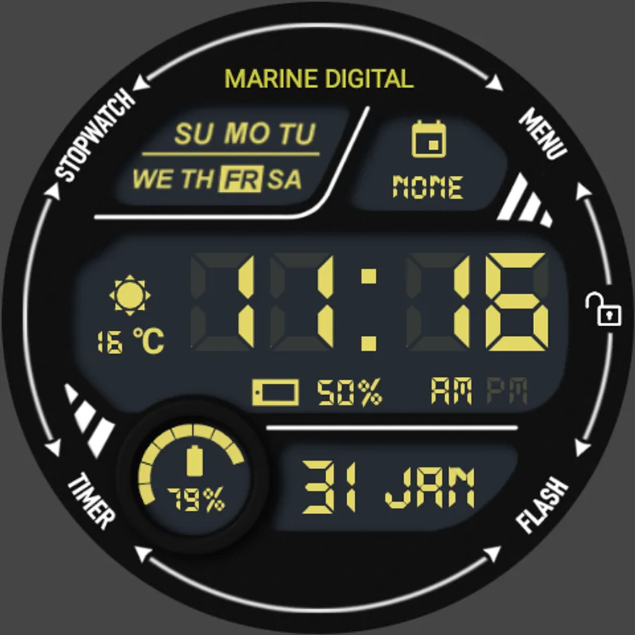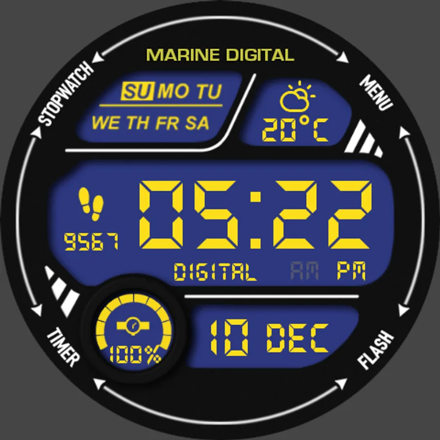 Marine Digital Interactive Watch Face !! A Unique Military Style Watch face and Clock Live Wallpaper with Hourly Chime Sound effect, Touch Sound Effects and many Interactive Features for Phones and Wear OS 3.0 Smartwatches.