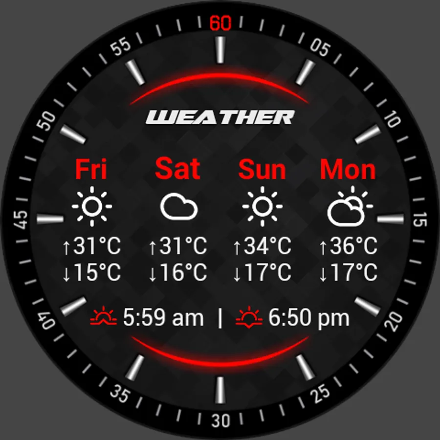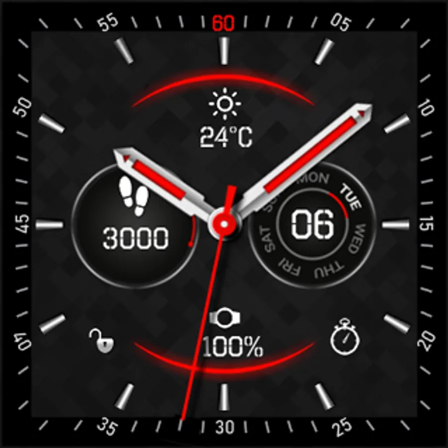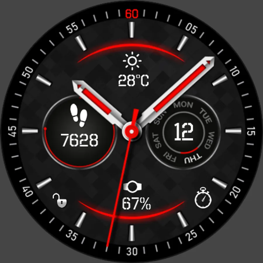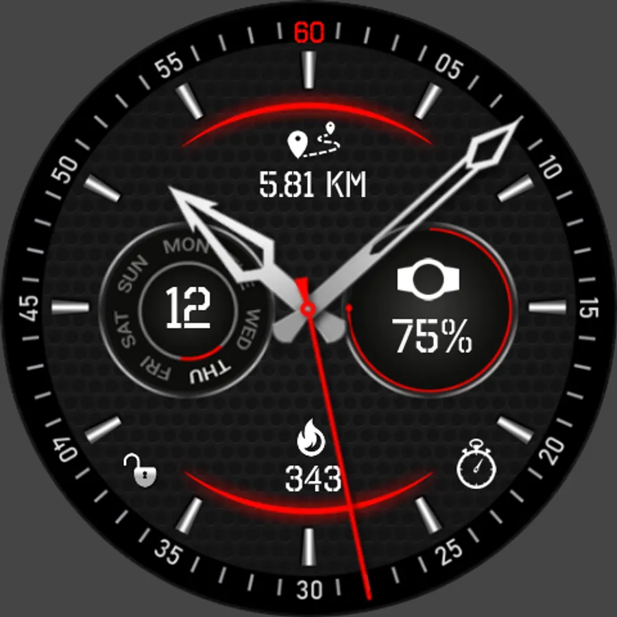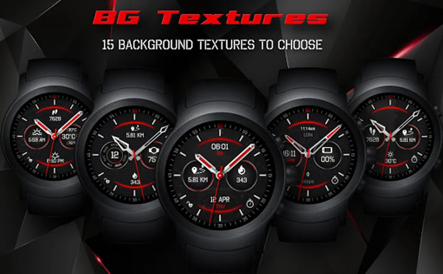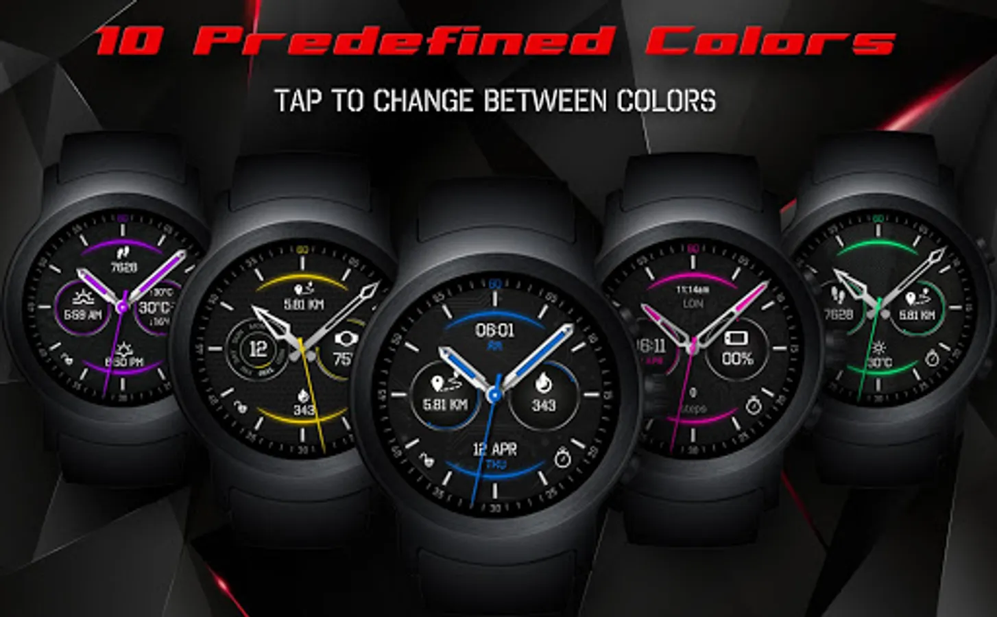 The watch face has 4 interactive tap targets on Watch face , which are fully customizable to be more informative which include number of data such as Weather, Steps, Battery level ,Date, etc..