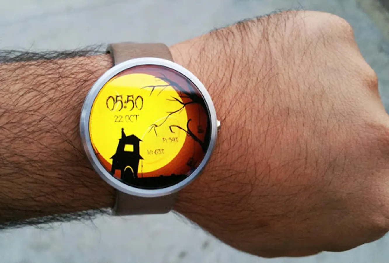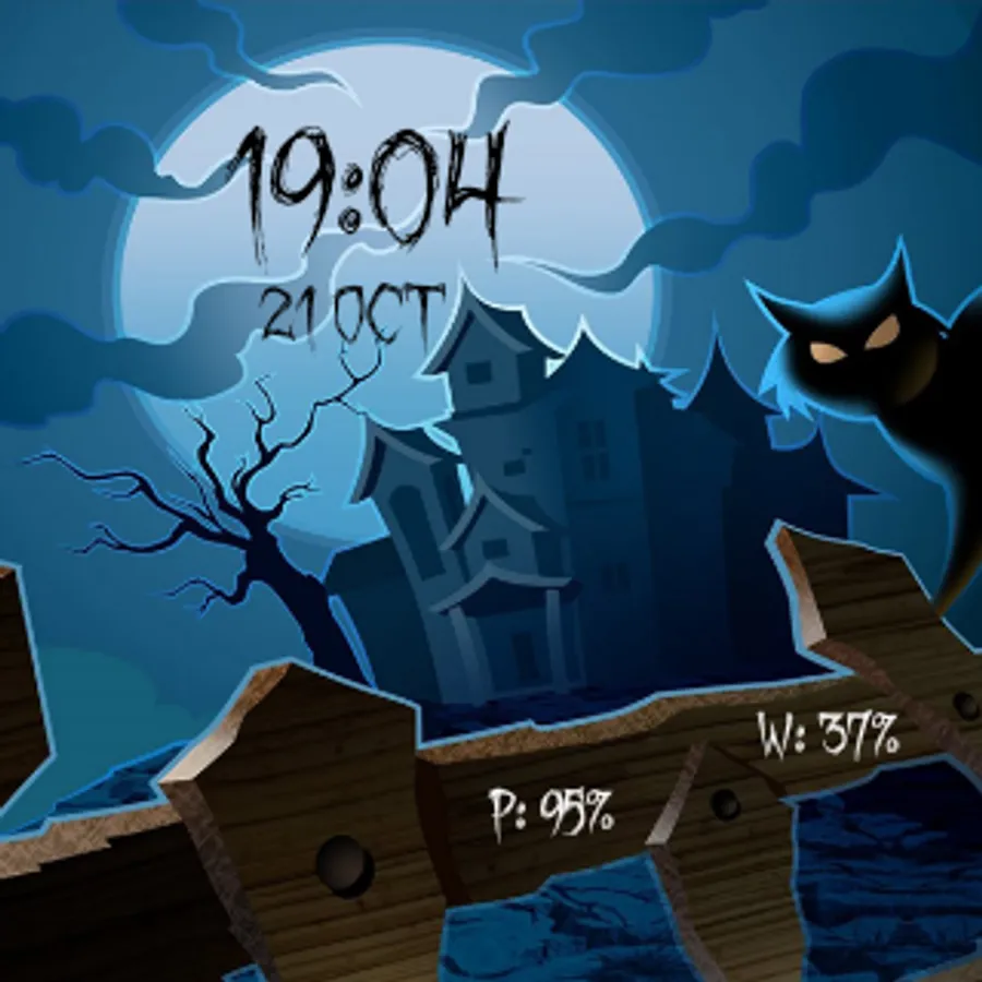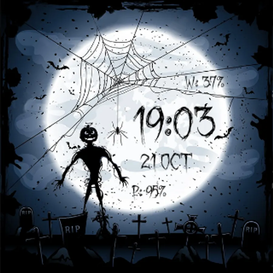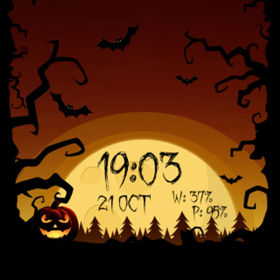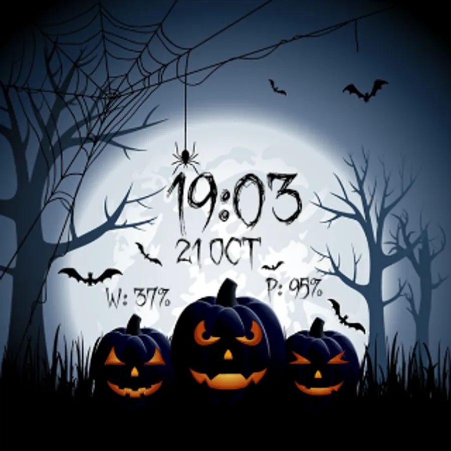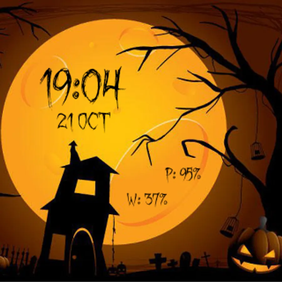✔ Unique Halloween design watch face, with Interactive Actions.