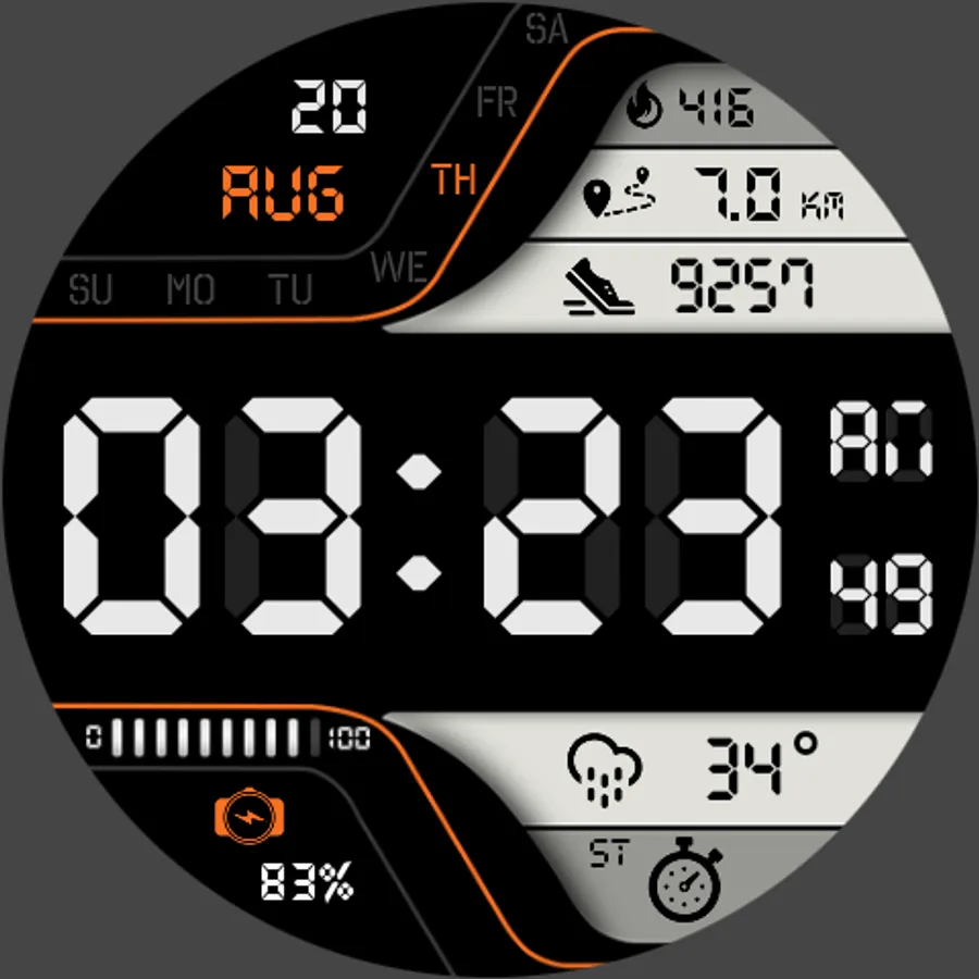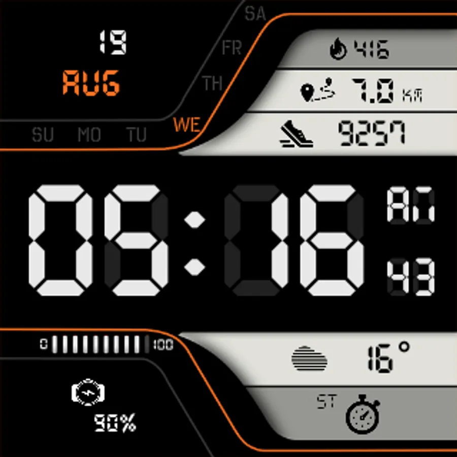 Splinter watch face is a New Futuristic Digital Watch face for Wear OS Smart Watches and Clock Live Wallpaper Phones.