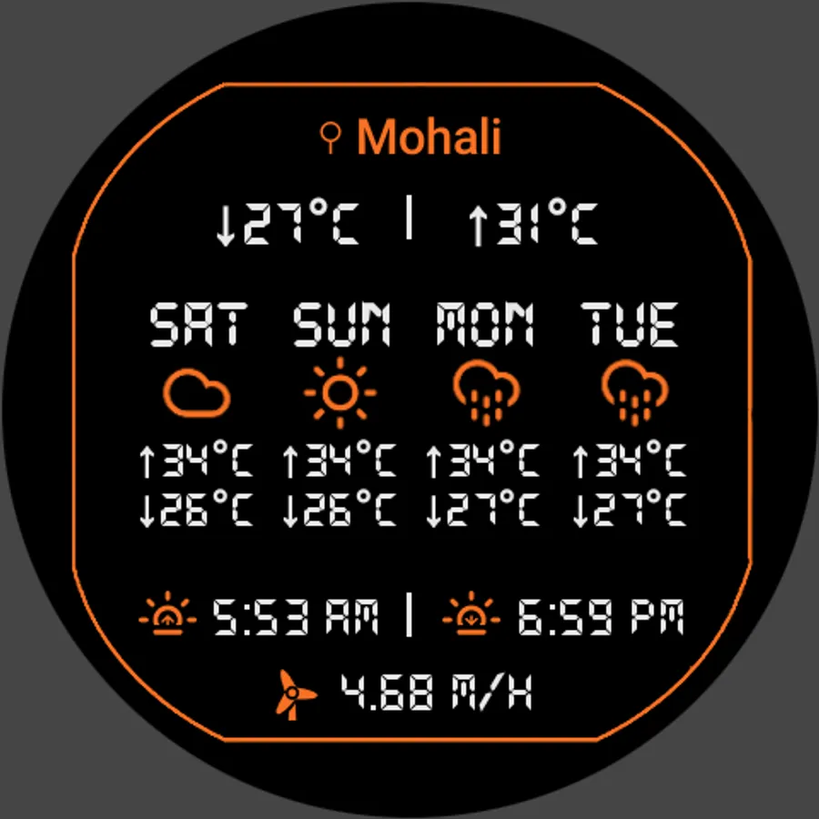 β Tap on "WEATHER" on main Watch Face to get 4 days Weather Forecast and Other Weather Info.