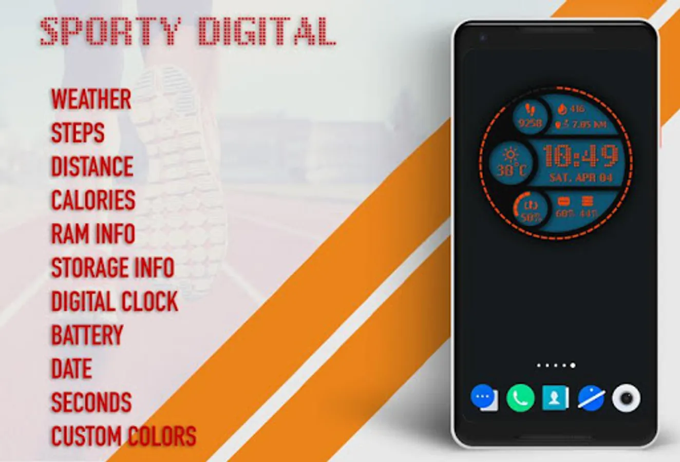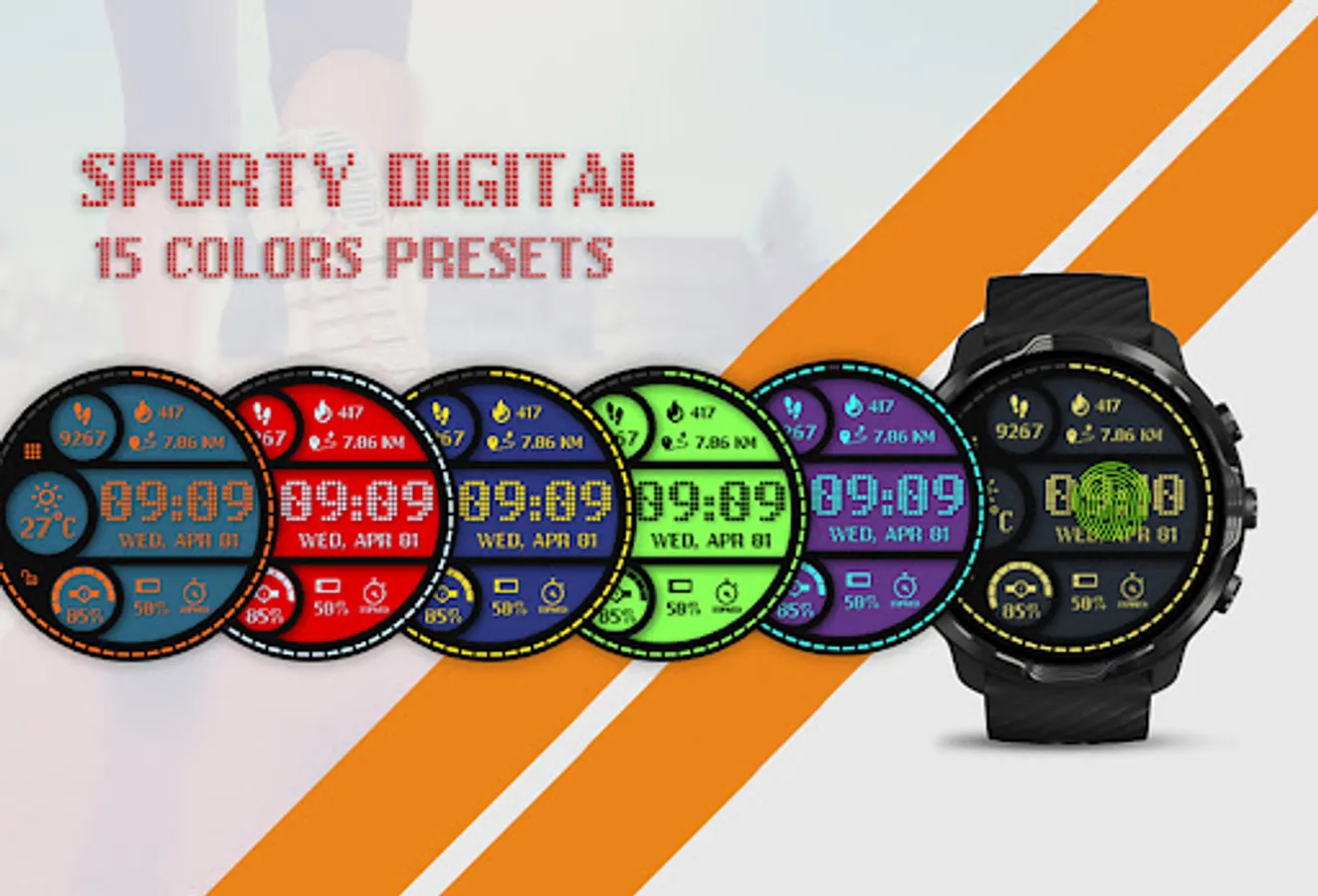 Sporty Digital Watch Face a is Fully customizable new Style Digital Wear OS (Android Wear) Watch Face and Clock Live Wallpaper for all Phones.