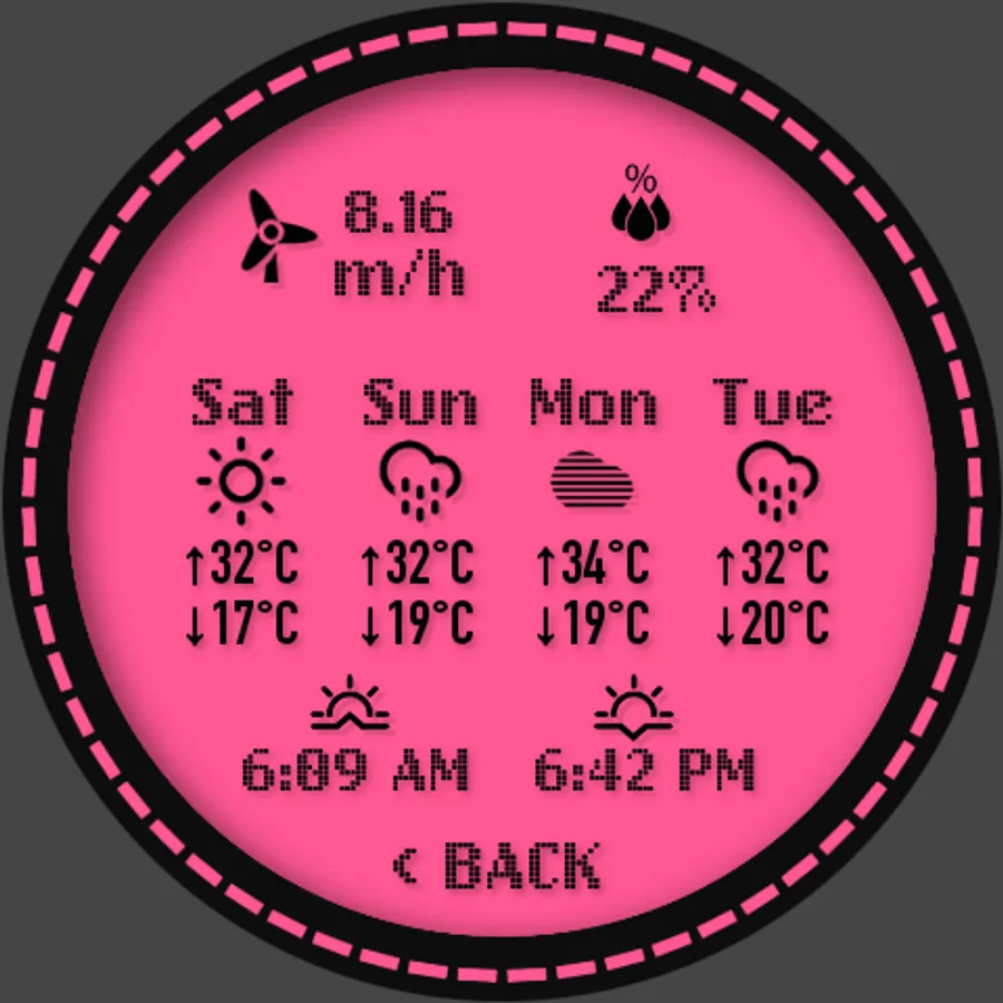 ❖ Tap on "WEATHER" on main Watch Face to get 4 days Weather Forecast and Other Weather Info.