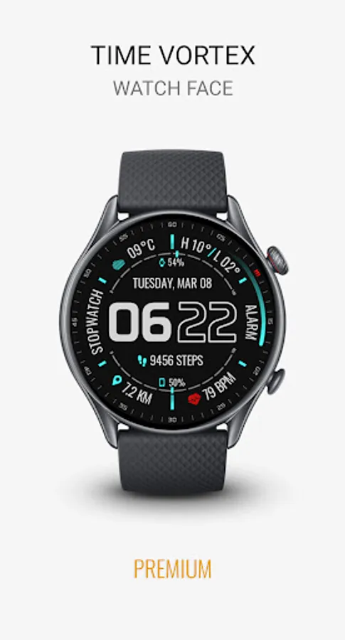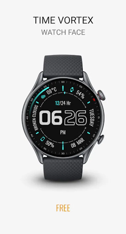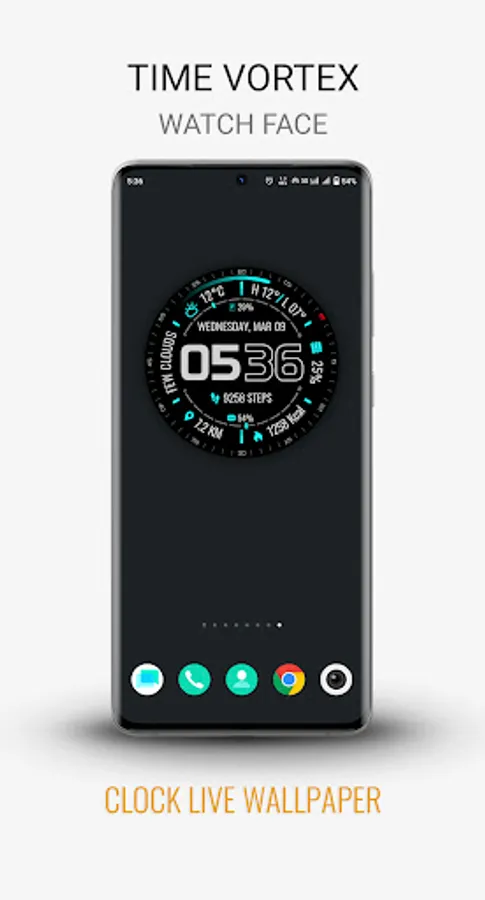 Time Vortex is a Futuristic Interactive Watch face for Wear OS smartwatches and Clock Live Wallpaper for Phones .