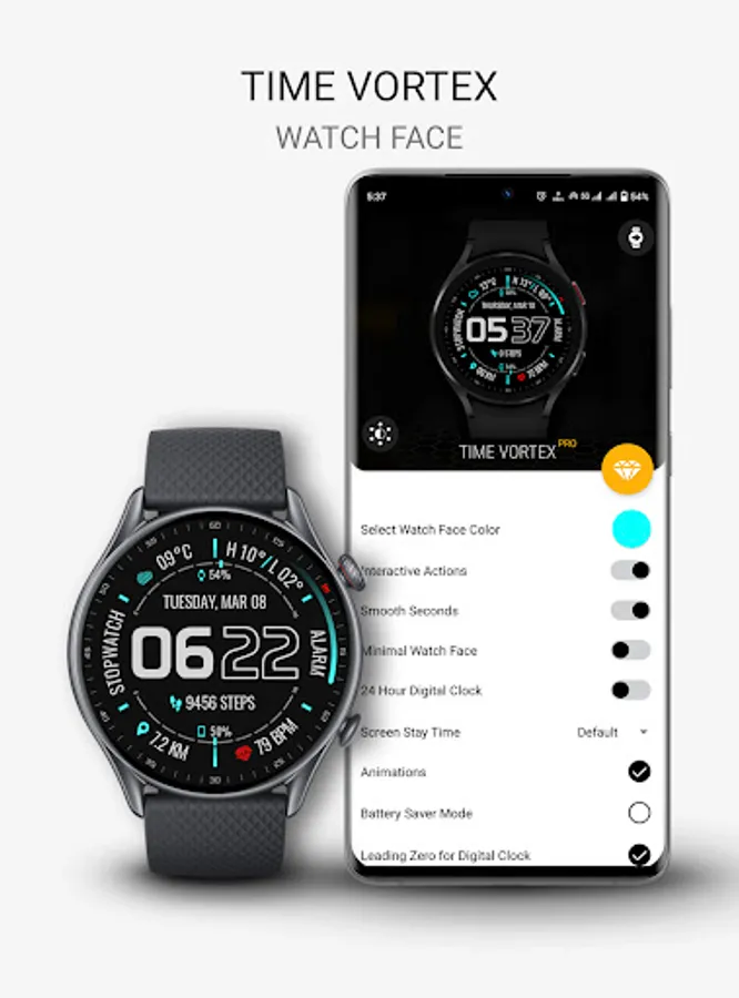 • Android 12 style watch face setting app with Live Preview.