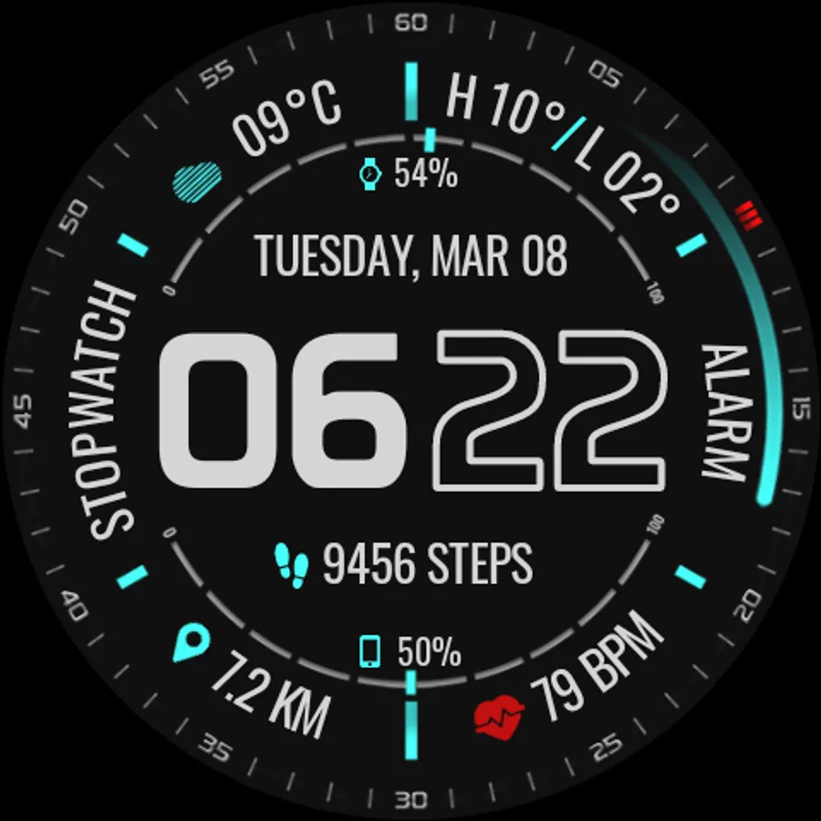 • Unique Style Futuristic Animated Watch Face.