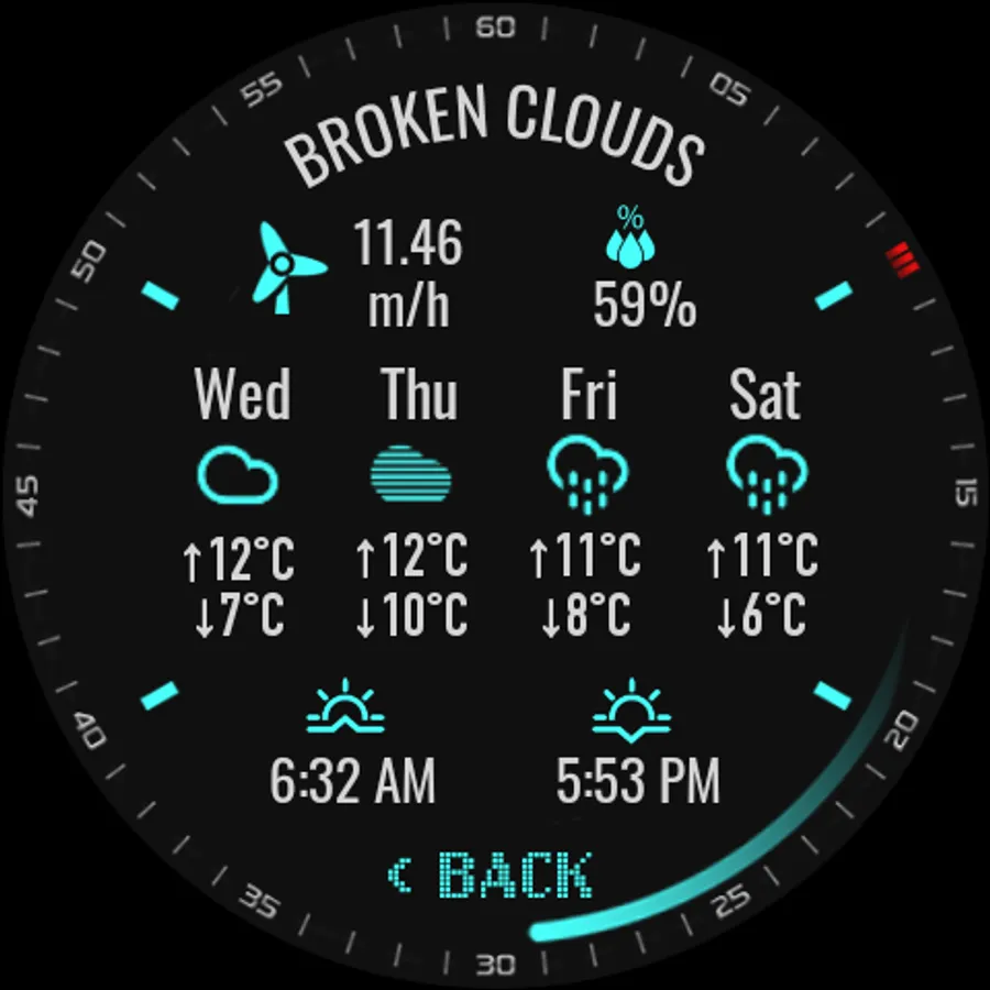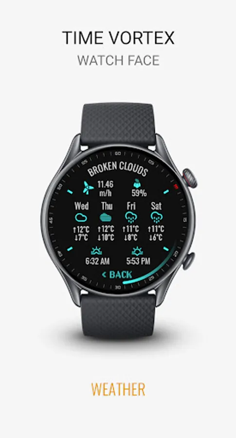 ❖ Tap on "WEATHER" on main Watch Face to get 4 days Weather Forecast and Other Weather Info.