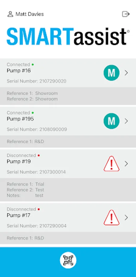 SMARTassist® also enables the user to view all pumps assigned to them and monitor their current status.