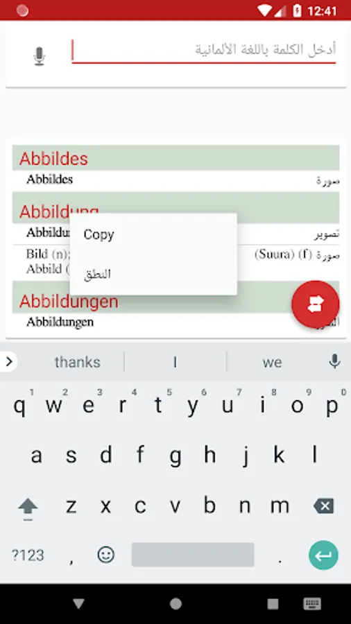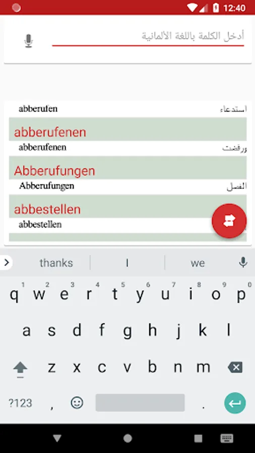 A German-Arabic dictionary and a German-Arabic dictionary allows you to translate words from Arabic to German and vice versa without having to connect to the Internet and free.