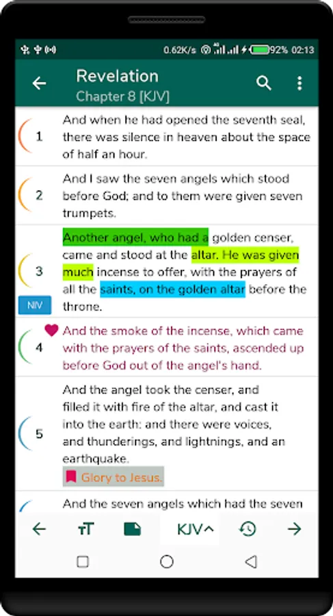 It is designed with the user in mind and therefore includes great features like inbuilt notes, verse sharing, Multiverse selection, bookmarks, highlights, favorite verses, and advanced search options. The colorful design and combination of custom fonts make it a great bible reader app.