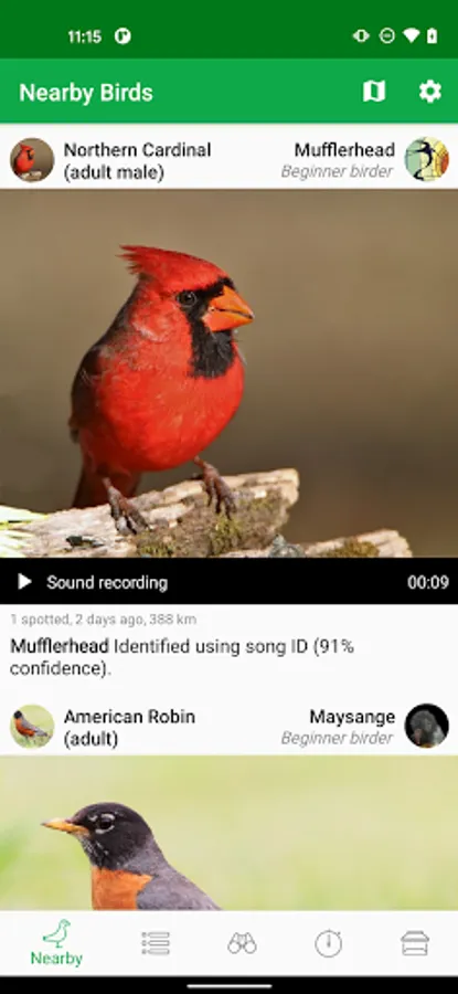 • Identify birds by sound (song ID) or image (video or photo ID)