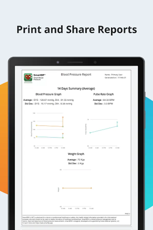 ✔ Printable PDF reports and share PDF Reports through email with your doctor and family members.