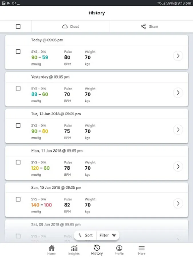 ✔ Sync between all your mobile devices through SmartBP Cloud, including Android & iOS devices.
