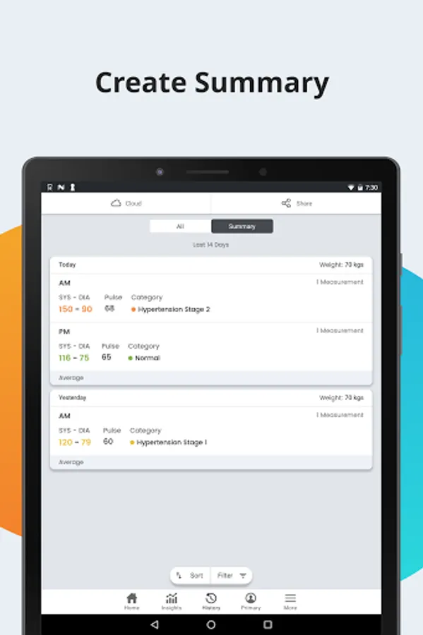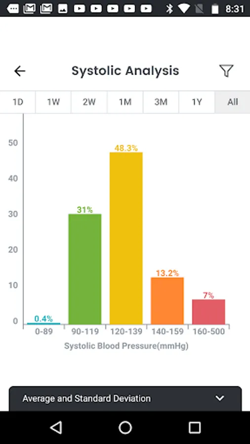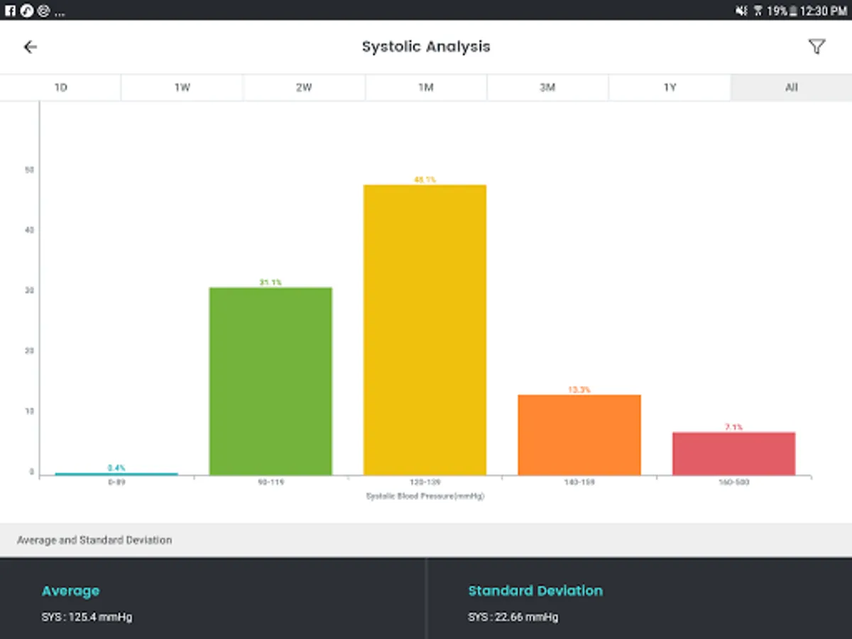 ✔ Statistical Charts allow you to filter based on time and tags. Compare results before and after a medication change and determine if the change in your treatment plan is effective in reducing your blood pressure.