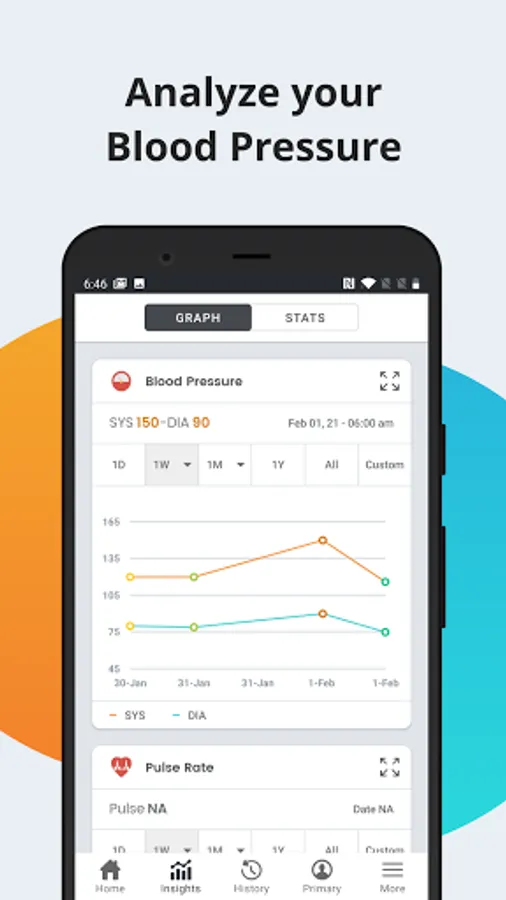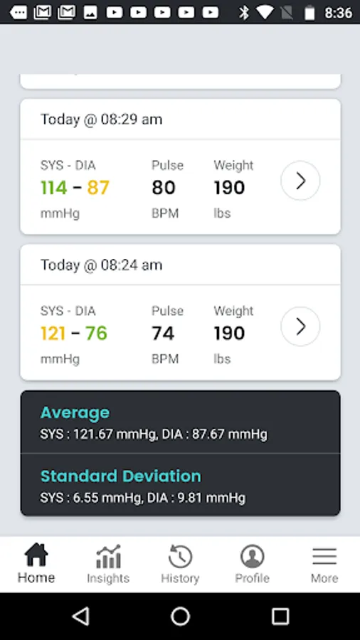 ✔ See your Average Blood Pressure and Standard Deviation across different time ranges and visualize trends in your Charts over time