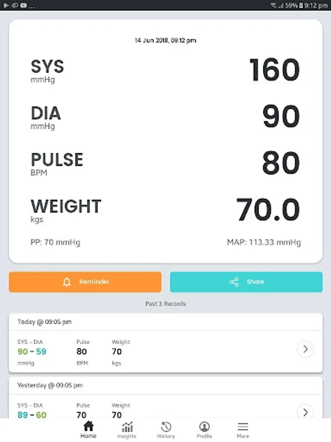 ✔ Add systolic blood pressure, diastolic blood pressure, pulse rate and weight measurements with notes.