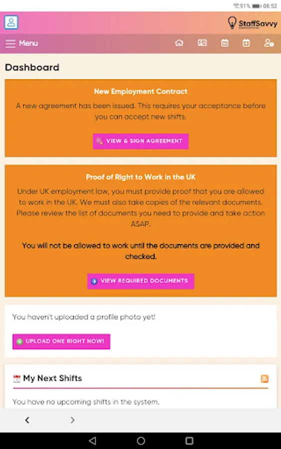 Quick access to your StaffSavvy account along with push notifications and offline viewing of your critical details.