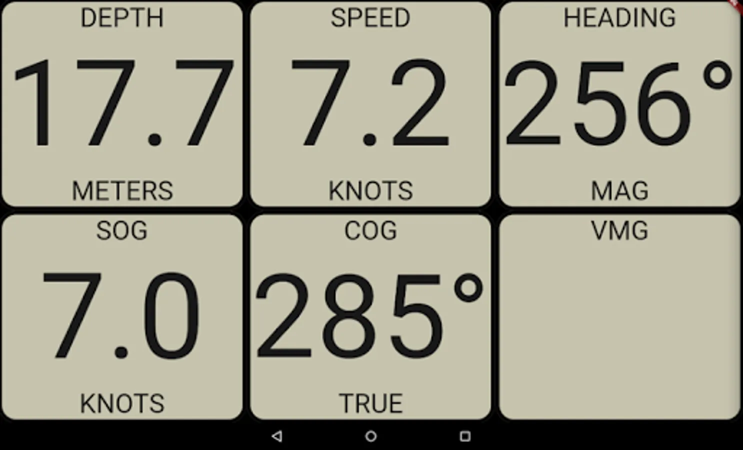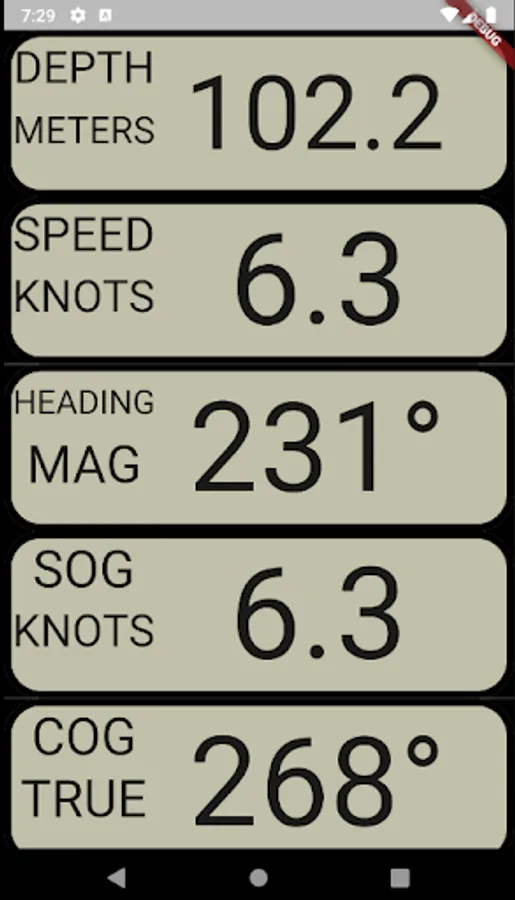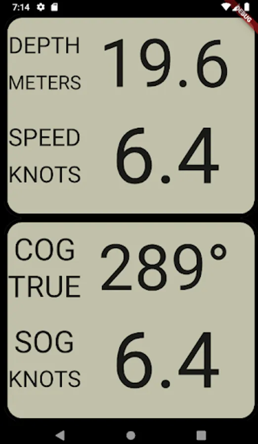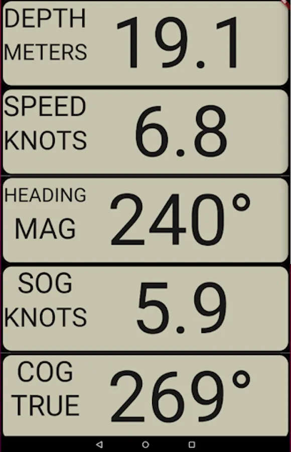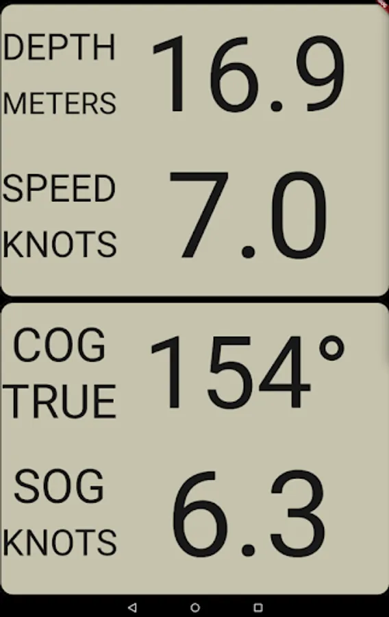 New version of SmartBoat featuring new Map displays. Display data from devices on your boat, e.g. Depth, Speed, Heading, GPS position, COG, SOG, Wind speed and angle, Log, VMG, Average speeds(Wind speed, STW, SOG). Sensors e.g. Air/Sea temperature, Air Pressure and Humidity, Heel and Pitch. Includes an Anchor Watch with audible alarm and a rudimentary AIS screen which will improve over time.