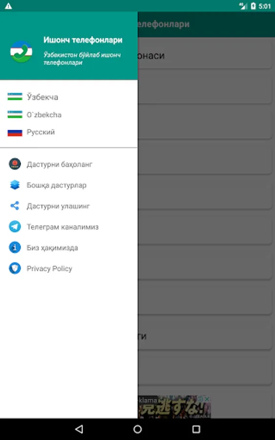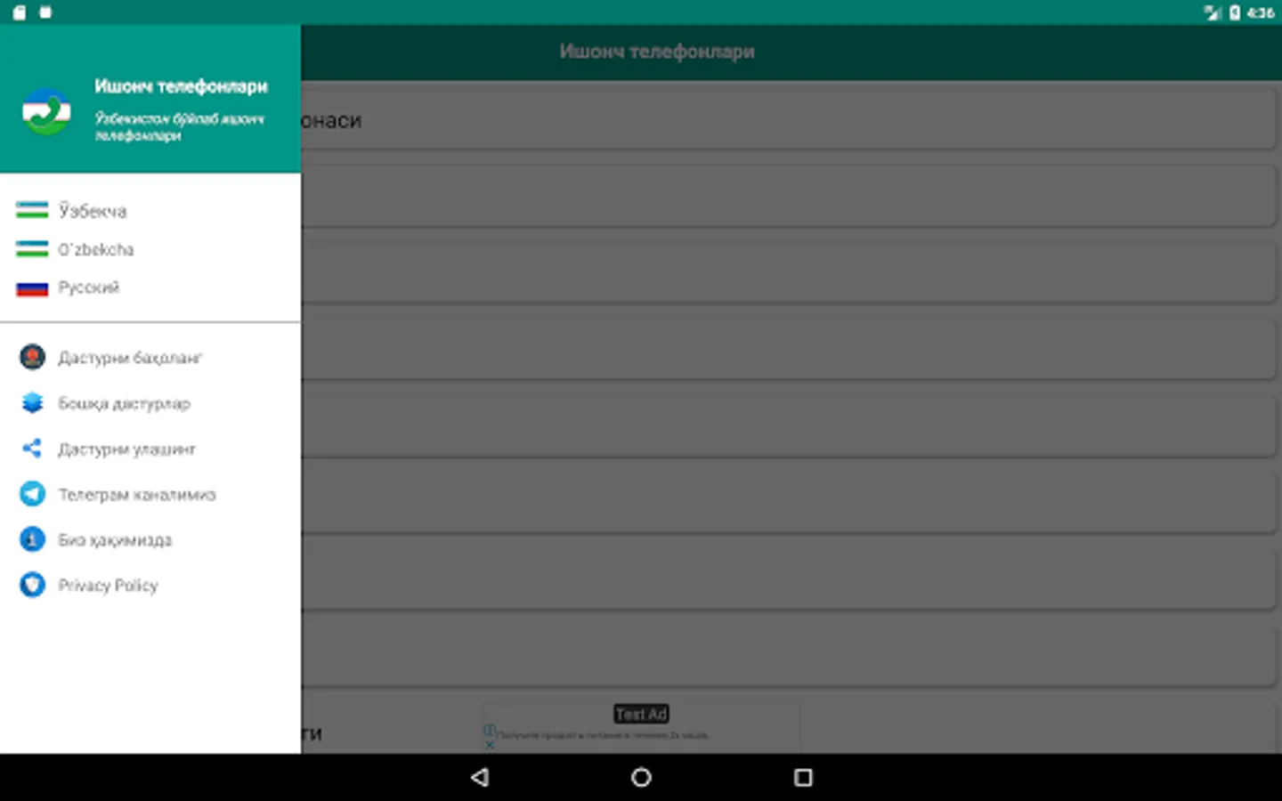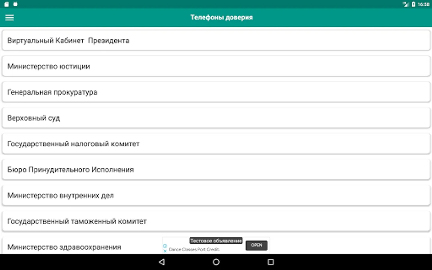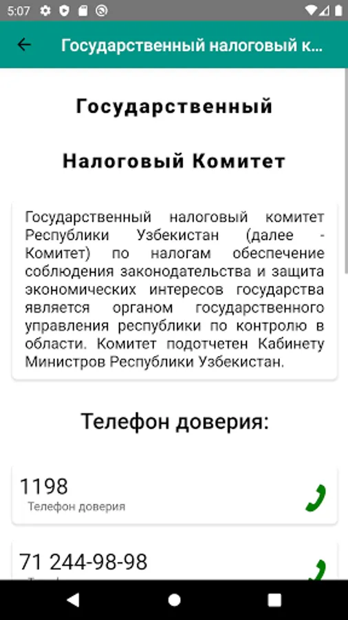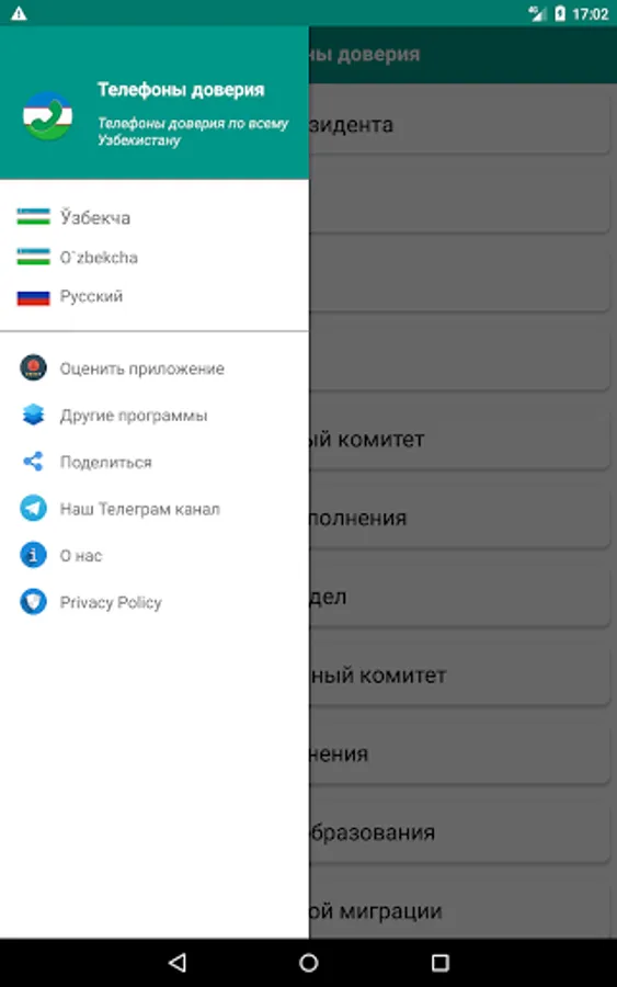 Dasturda O'zbekiston bo'yicha ishonch telefonlari keltirilgan.