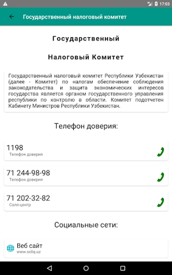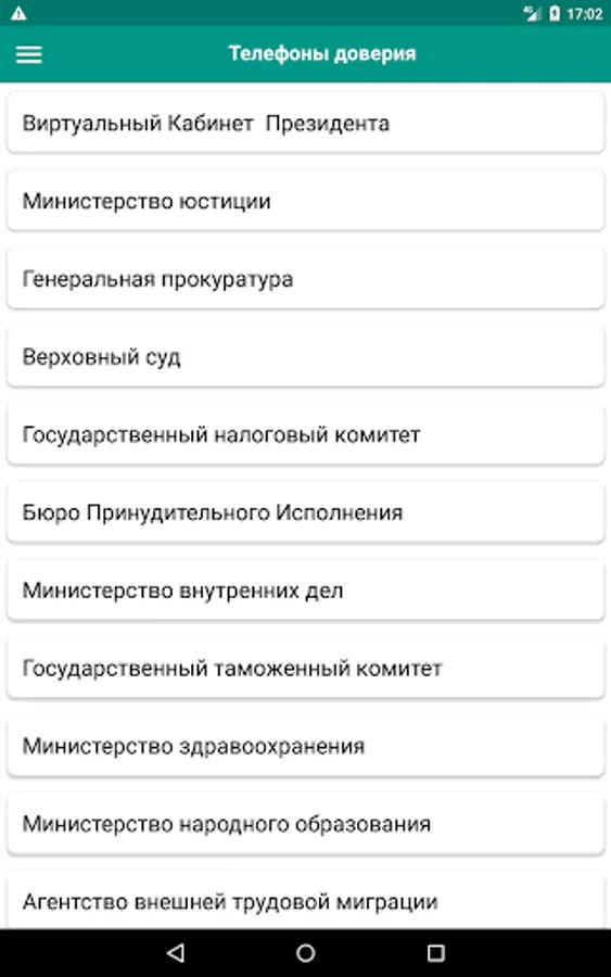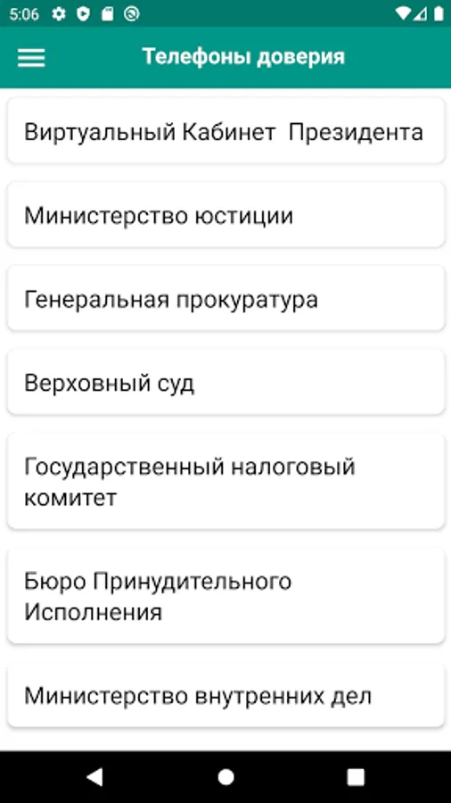 Quyidagi davlat tashkilotlariga bog'lanish uchun ishonch telefonlari, internet sahifalari, elektron pochtalari va ijtimoir tarmoqlardagi manzillari mavjud: