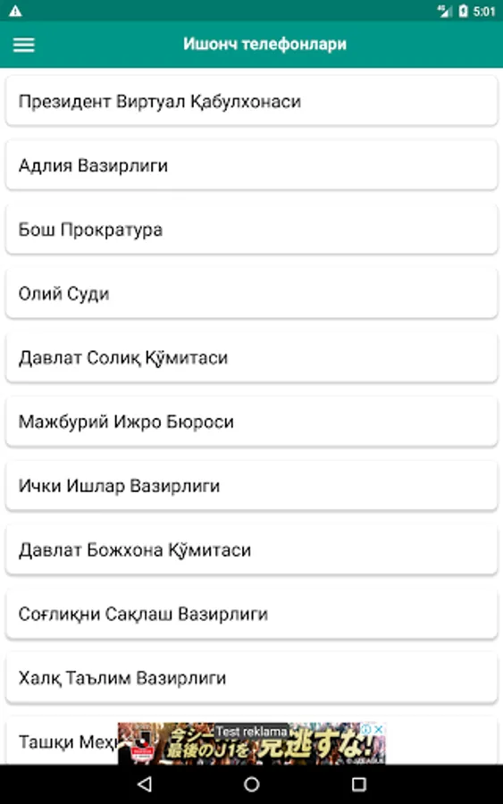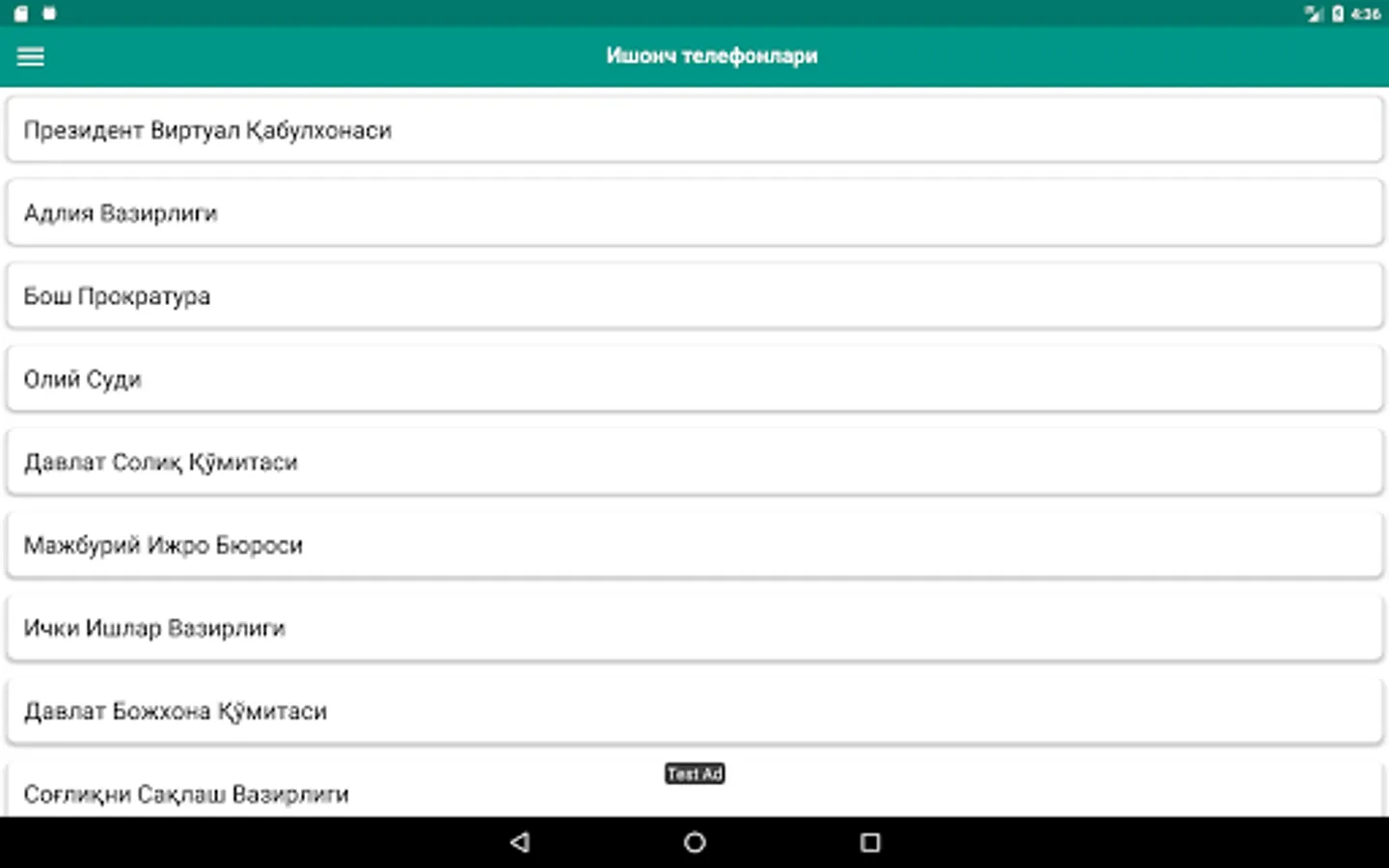 Dasturda yana qanday tashkilotlar telefonlari va internet sahifalari bo`lishini hohlaysiz?