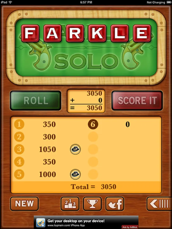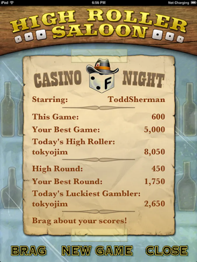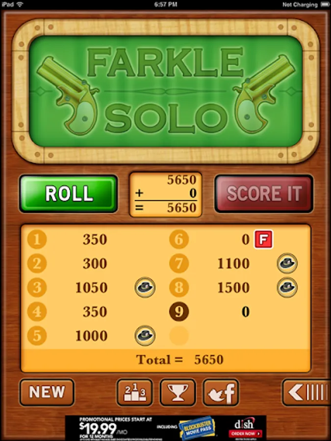 Farkle Solo Solitaire at High Roller Saloon is an exciting fast paced solitaire dice game. Score the most points in ten rounds to be today's highest scoring player. Try to beat your best score or your friends. Are you ready to risk it all to be the star of the saloon?
